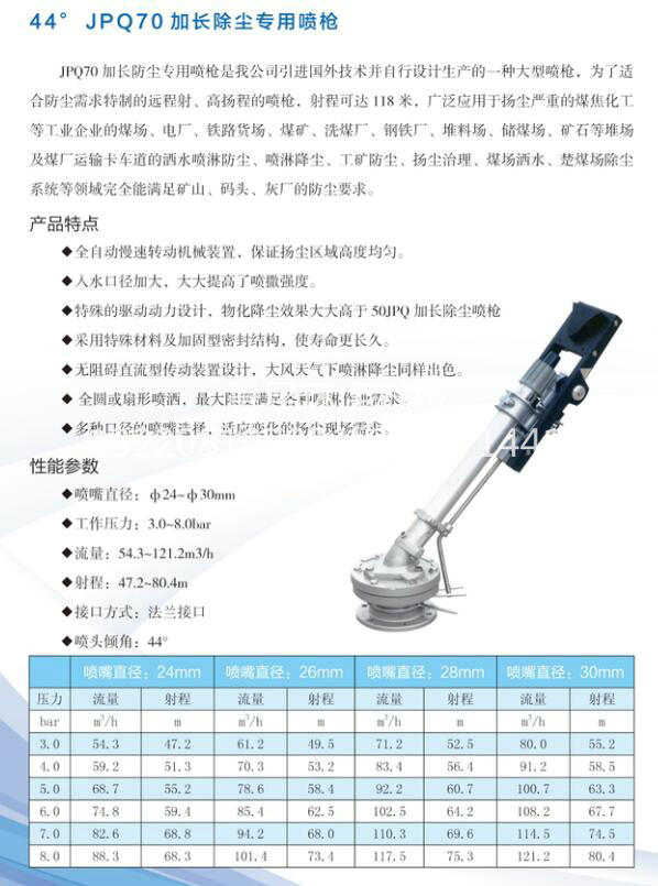 主要应用于扬尘严重的煤焦化工等工业企业的煤场,电厂,铁路货场,完全能满足矿山、码头、灰厂的防尘要求。