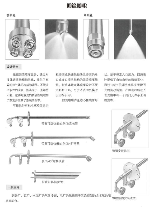 适用于钢铁厂、铝厂、水泥厂的气体冷却,电厂的脱硫用于污染控制的含水氨射等场合。