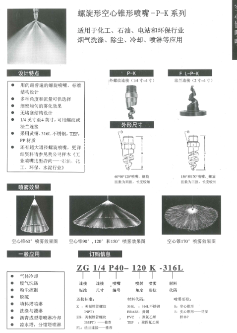 使用于化工、石油、电站和环保行业烟气洗涤、降尘、冷却、喷淋等应用。