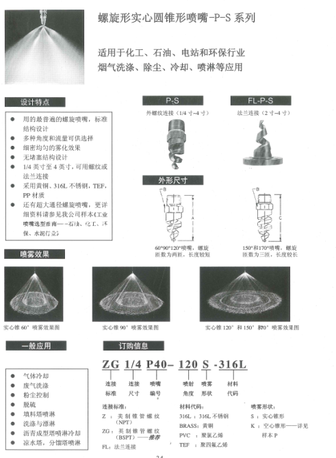 适用于化工、石油、电站和环保行业烟气洗涤、降尘、冷却、喷淋等应用。